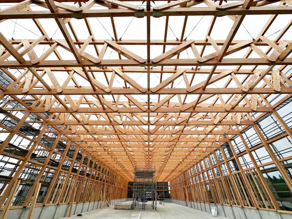 ファーストプライウッドが多雪区域に大型木造倉庫(17m×57m)を竣工しました